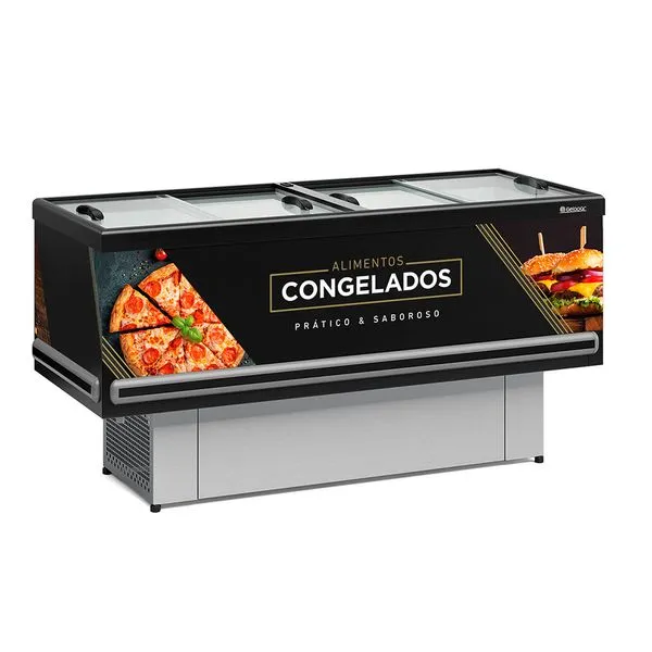 A Ilha GESV-190RPR Standard da Gelopar é indicada para refrigeração e exposição de produtos congelados ou resfriados, devido ao fato do produto ser dupla ação, assim você poderá ajustar o termostato na posição que desejar: Congelar/Conservar (temperatura: -16° a –20 °C) ou Resfriar (temperatura: 0° a +7 °C). A Ilha GESV-190RPR possui capacidade para 525 litros e conta com divisórias internas aramadas e ajustáveis de acordo com a sua necessidade! Os vidros na parte superior são retos, temperados, deslizante e baixo emissivo, para evitar a formação de gotículas de água (embaçamento) e prejudicar a visão de seus clientes. Seu revestimento interno é em aço pré-pintado na cor branca, termostato analógico, sistema de degelo manual e pés niveladores com regulagem, garantindo ajuste perfeito a qualquer tipo de piso. A Gelopar oferece 12 meses de garantia para sua tranquilidade. Obs: Cores de acabamento e materiais sujeitos a variação de acordo com o lote de produção e/ou entre os materiais que compõem o produto (ex.: chapa, plástico,madeiras e etc.)